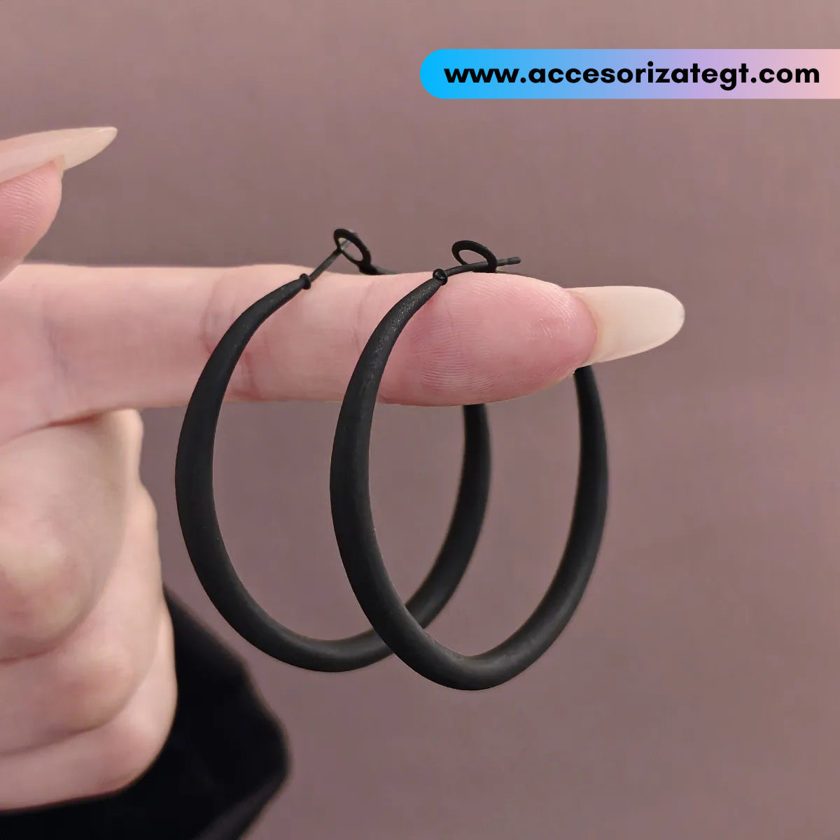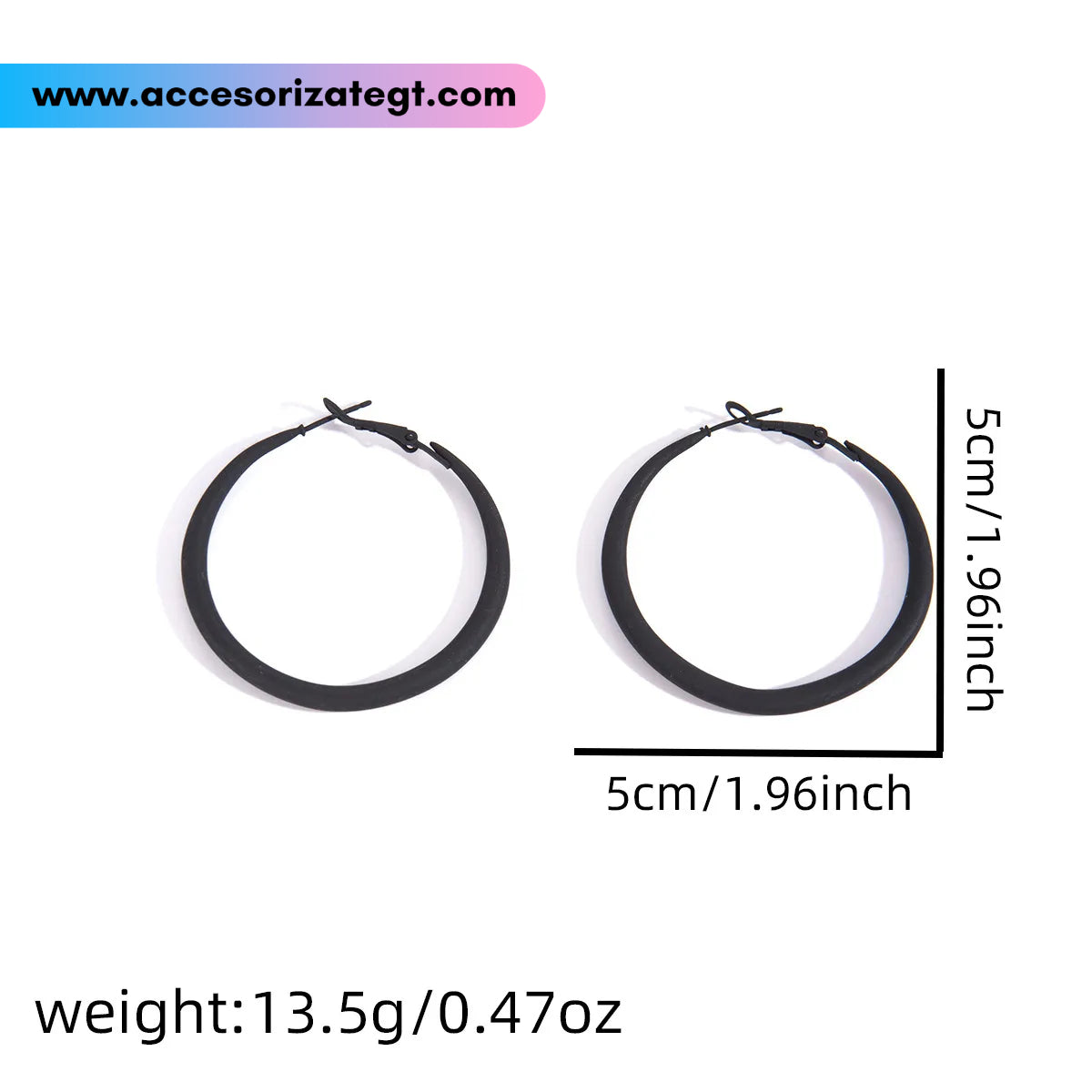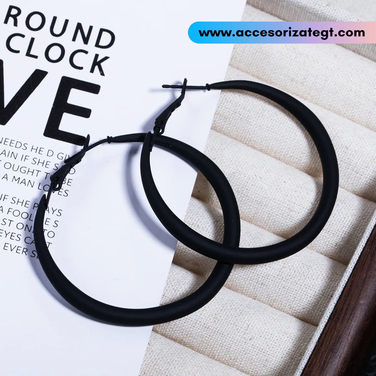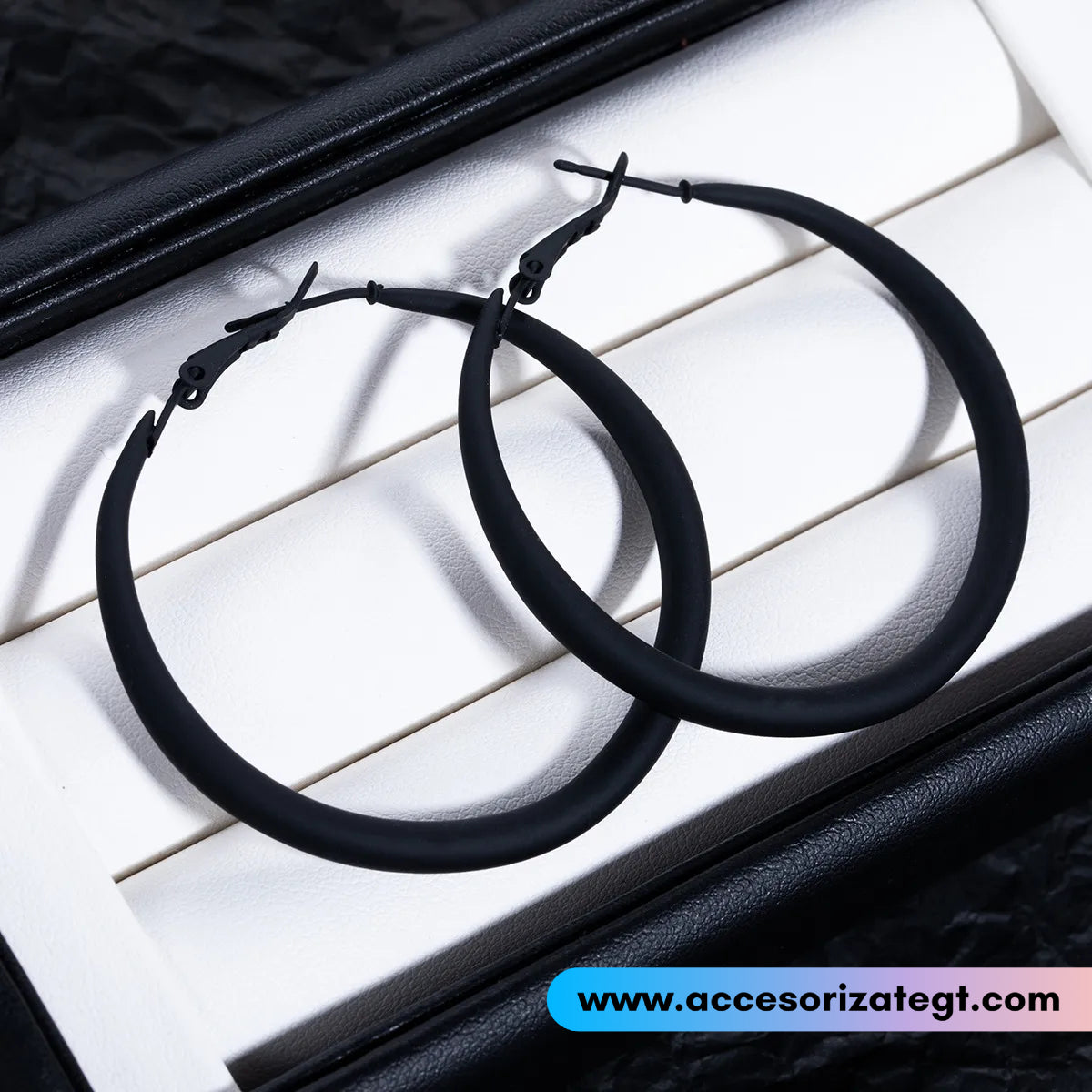 Argollas de 5 centímetros de diámetro color negro con acabado mate.