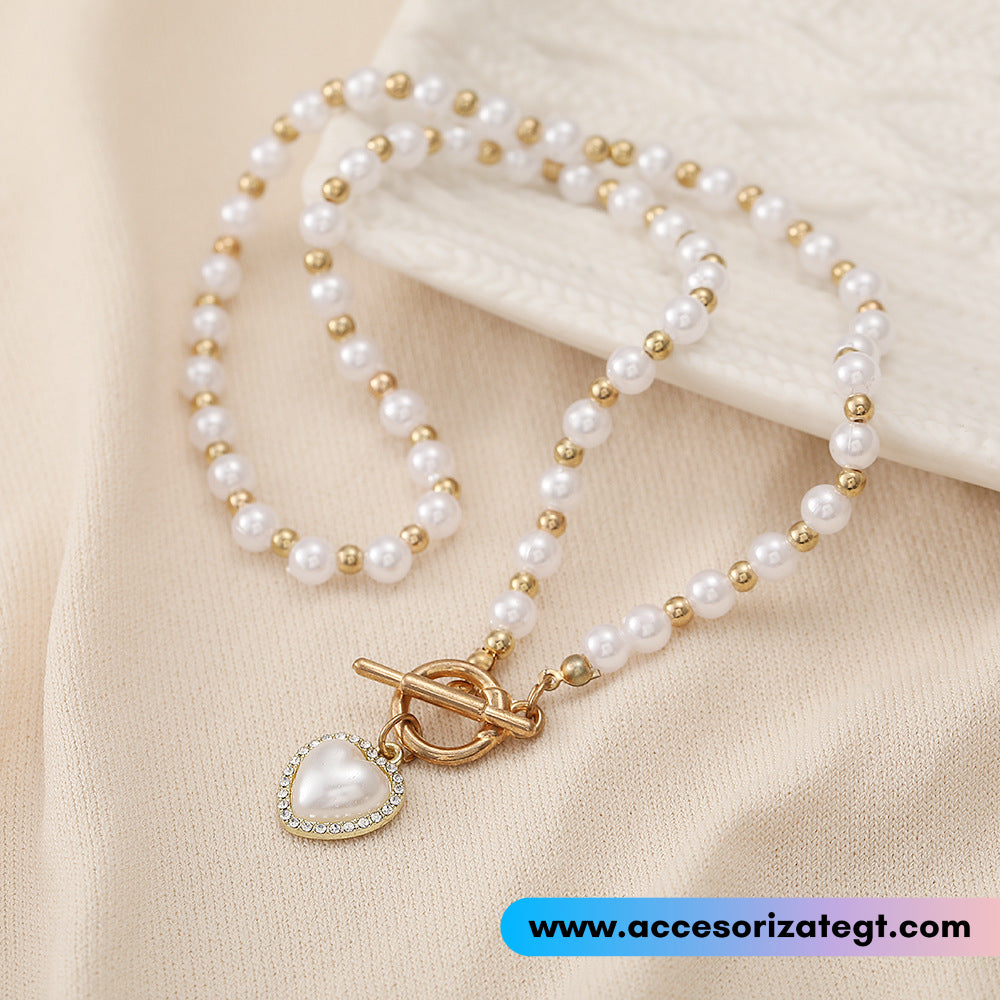 Gargantilla Doble de Perlas con Dije Ovalado [EL361]