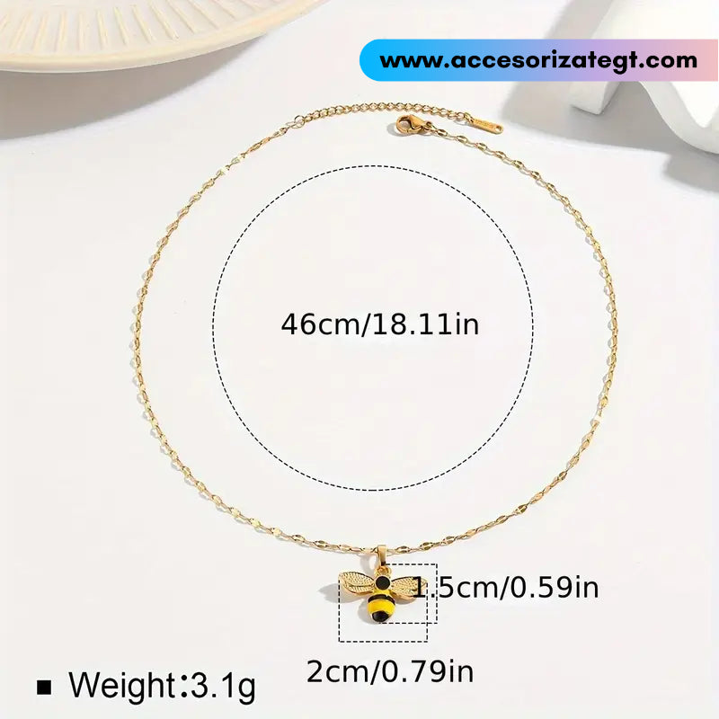 Linda cadena de acero color oro, con dije esmaltado en forma de abeja.