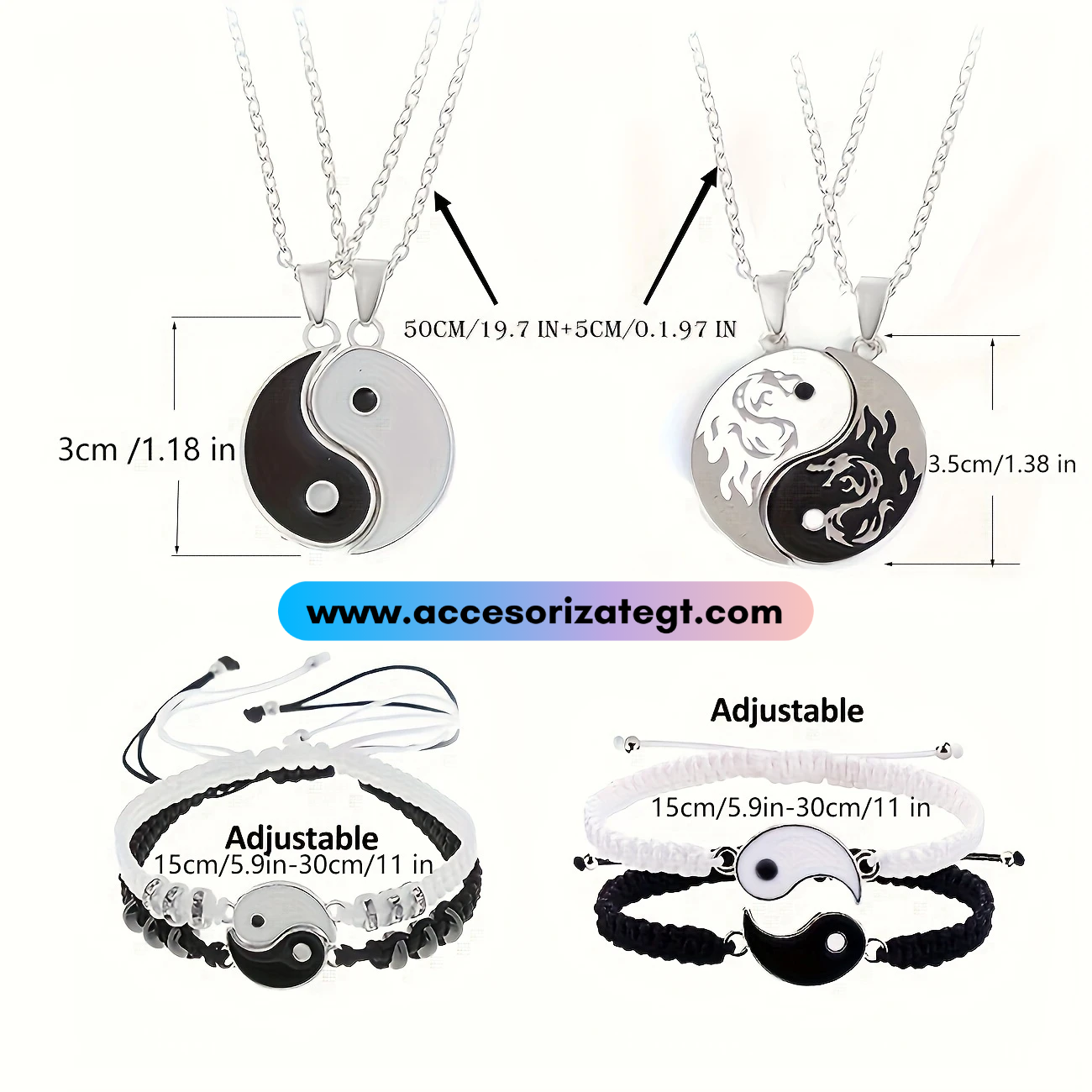 Set de Pulseras con Dije de Infinito, Blanco y Negro [JP768]